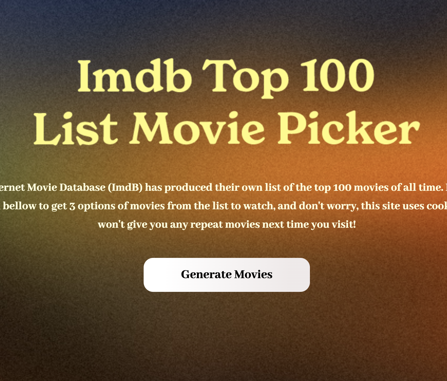 Web application that recommends films from IMDb’s Top 100 movies list. Built using React.js and open-source datasets